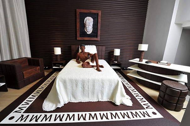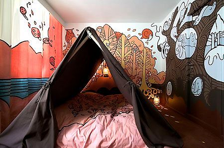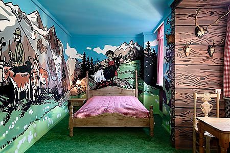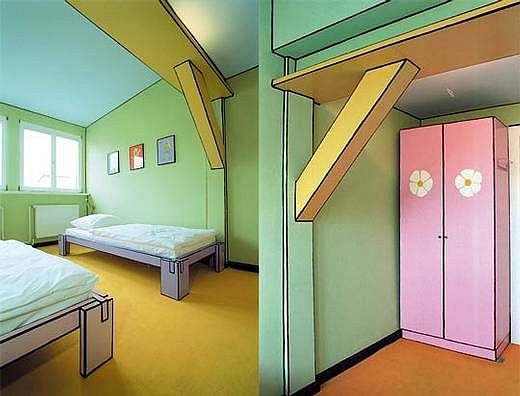Cietokšņa istaba viesnīcā Propeller Island City Lodge, kas atrodas Berlīnē, Vācijā. Šajā istabā atrodas gulta, kas izskatās pēc cietokšņa, kas, savukārt, ir arī minigolfa laukums. Šo dizainu izveidojis Larss Strošēns.