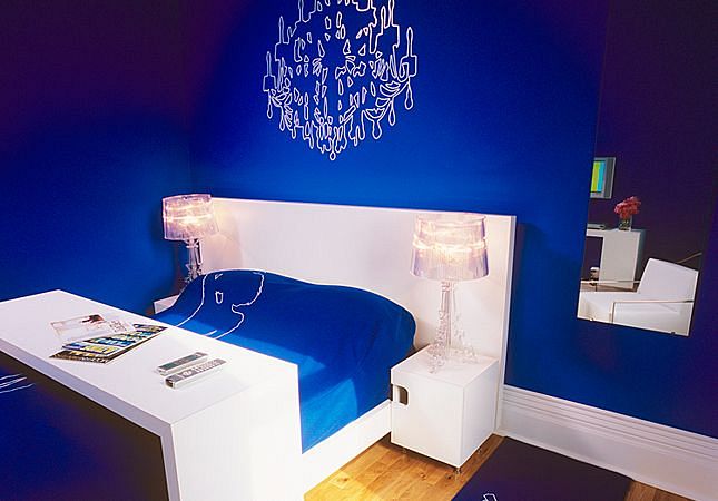 Zilās līnijas istaba viesnīcā Gladstone Hotel, kas atrodas Toronto, Kanādā.