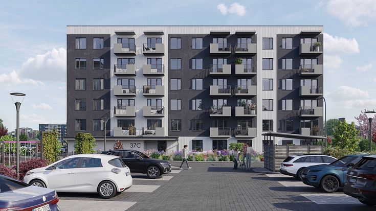 Tajā ir 64 dzīvokļi, no kuriem 25 % nepilnu trīs mēnešu laikā jau ir rezervēti. Dzīvojamo namu ekspluatācijā plānots nodot šī gada beigās.