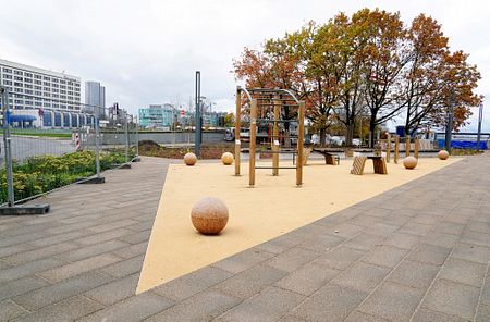 Promenādē netālu no Mūkusalas rotācijas apļa izbūvēts aktīvās atpūtas laukums skrituļslidotājiem. Pie Akmens tilta, netālu no skatu laukuma, izbūvēts jauns bērnu rotaļu laukums, bet AB dambja pusē izveidots vingrošanas laukums. Promenādē izbūvētas trīs dzeramā ūdens uzpildes stacijas. Apmeklētāju ērtībām gan pie Mūkusalas apļa, gan posmā starp Akmens un Dzelzceļa tiltu uzstādīta publiskā tualete ar pašattīrīšanās sistēmu. Visā promenādes garumā izbūvēts mūsdienīgs apgaismojums nodrošinot teritorijas pieejamību un drošību arī diennakts tumšajā laikā.