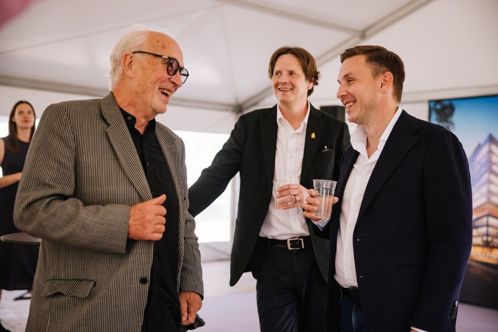 Pasākumā pulcējās visa projekta komanda un sadarbības partneri – pārstāvji no vairāk nekā 20 Latvijas, Lietuvas un Igaunijas uzņēmumiem, kas strādā pie šī projekta, tostarp Arhis Arhitekti, Forma 2, BICP, Ardeko, UAB Staticus, Aile Grupa, AS Inspection, Katak, MiDan Contractors OÜ un citi.