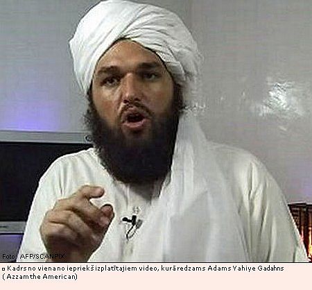 Adams Yahiye Gadahns esot uzaudzis Kalifornijā, vēlāk pārcēlies uz Pakistānu. Kopš 2004.gada oktobra viņš esot parādījies vismaz septiņos ar al Qaeda saistītajos video, kuros viņš runā angļu valodā un slavina teroristu tīklu.