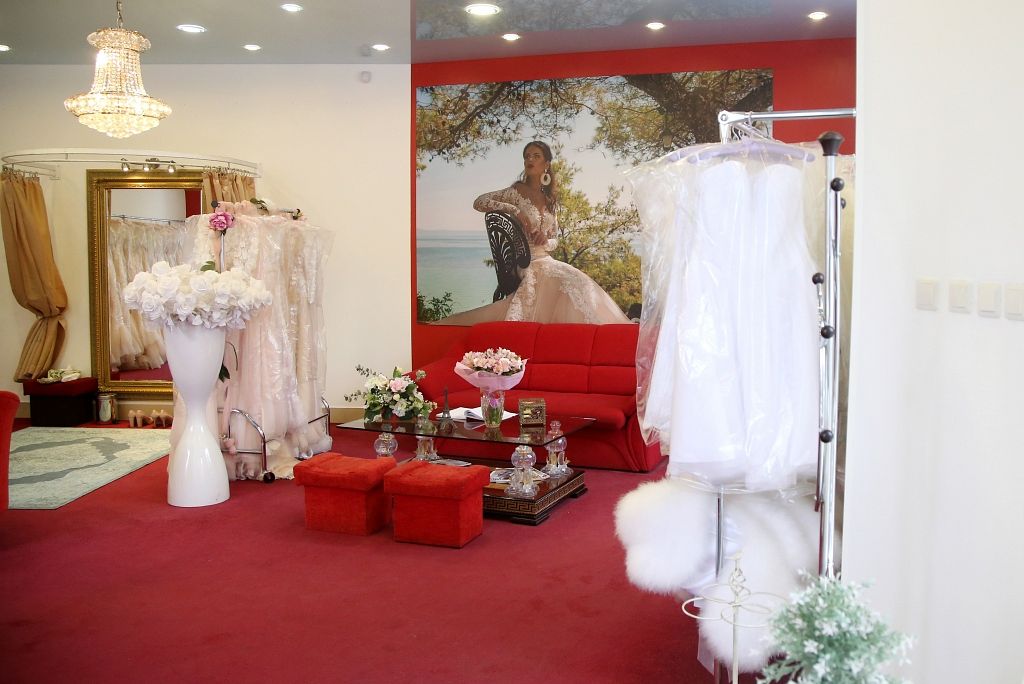 Kāzu salons Dolce Coure Bridal, kas piedāvā Polijā šūtas kleitas. Tā īpašniece Alīna Moldovana par biznesu runā izvairīgi.