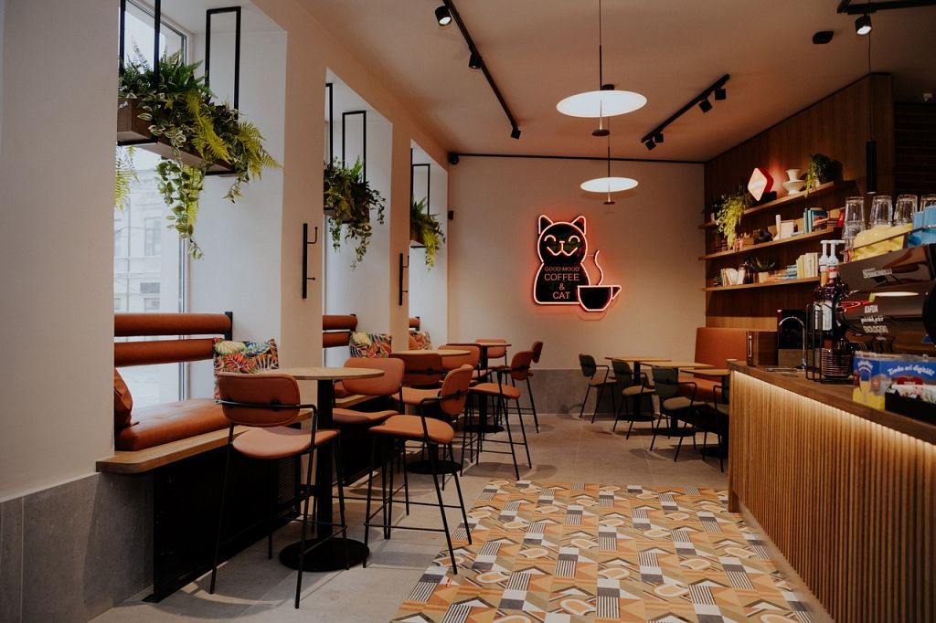 Kafejnīcas kopējā platība ir 46 kvadrātmetri, no kuriem 34 kvadrātmetri ir tirdzniecības zāle. Gada siltajos mēnešos kafejnīcas apmeklētājam atvērta būs arī kafejnīcas terase.