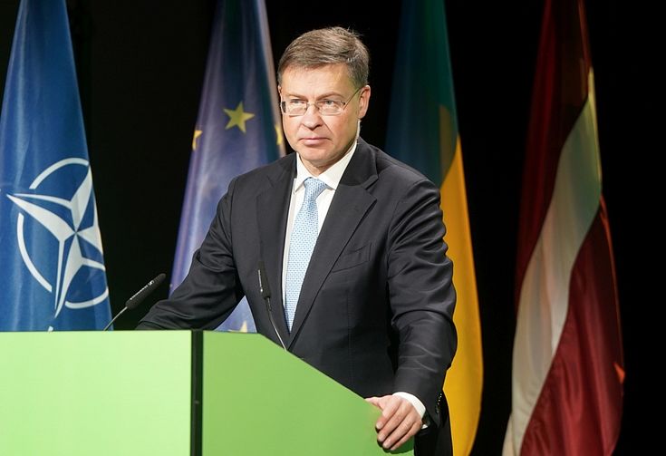 Viņš arī atzina, ka ES ir vēlme sadarboties un risināt šos jautājumus sadarbībā ar ASV, jo ASV ir ES stratēģiskais un lielākais investīciju, tirdzniecības partneris. Dombrovskis klāstīja, ka sadarbība ar ASV ir būtiska gan ekonomiski, gan ģeopolitiski. Politiķis norādīja, ka pirmās Trampa prezidentūras laikā ASV uzlika "nepamatotus" tarifus ES tērauda un alumīnija eksportam, uz ko ES bija spiesta reaģēt ar pretsoļiem, nosakot tarifus precēm no ASV. Viņš pauda cerība, ka no šādiem scenārijiem izdosies izvairīties, jo šajā ģeopolitiskajā situācijā ir svarīgi, lai demokrātiskās valstis strādātu kopā.
