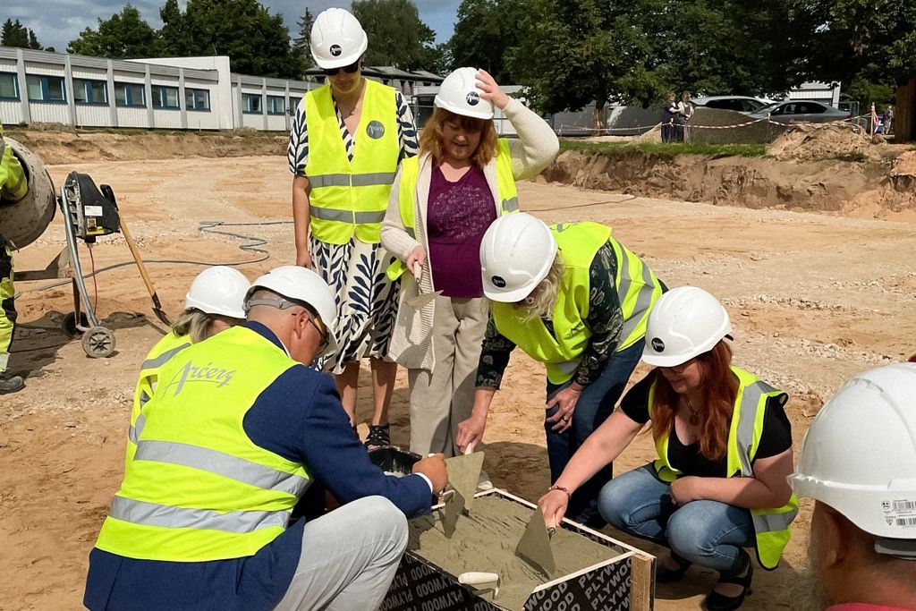 Projekta būvniecību īsteno SIA "Arčers", projektu izstrādāja arhitektu birojs "Made" Miķeļa Putrāma vadībā, savukārt, būvuzraudzību nodrošina SIA "Samners". Būvdarbi jau ir sākušies un jauno skolas ēku plānots pabeigt līdz 2026.gada beigām. 2026./2027. mācību gada laikā skolēni varēs pārcelties, lai mācību process noritētu modernā un ilgtspējīgā vidē.