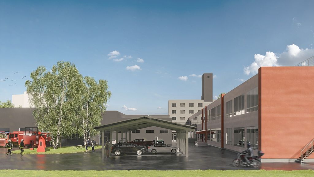 Jaunā ēka kļūs par projekta centrālo daļu — pilnīgi jaunu un VUGD vajadzībām pielāgotu būvi, kurā atradīsies gan auto remonta iecirknis dažāda izmēra transportam, gan operatīvā depo daļa ar ātru piekļuvi izsaukumiem.