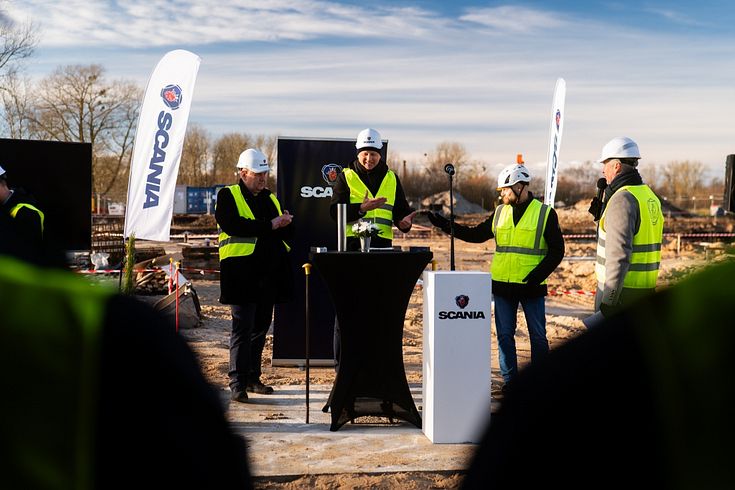 Liepājā, svinīgi iemūrējot laika kapsulu, Scania Latvia iezīmēja jaunā kravas automašīnu servisa un pārdošanas centra būvniecības pirmo posmu.