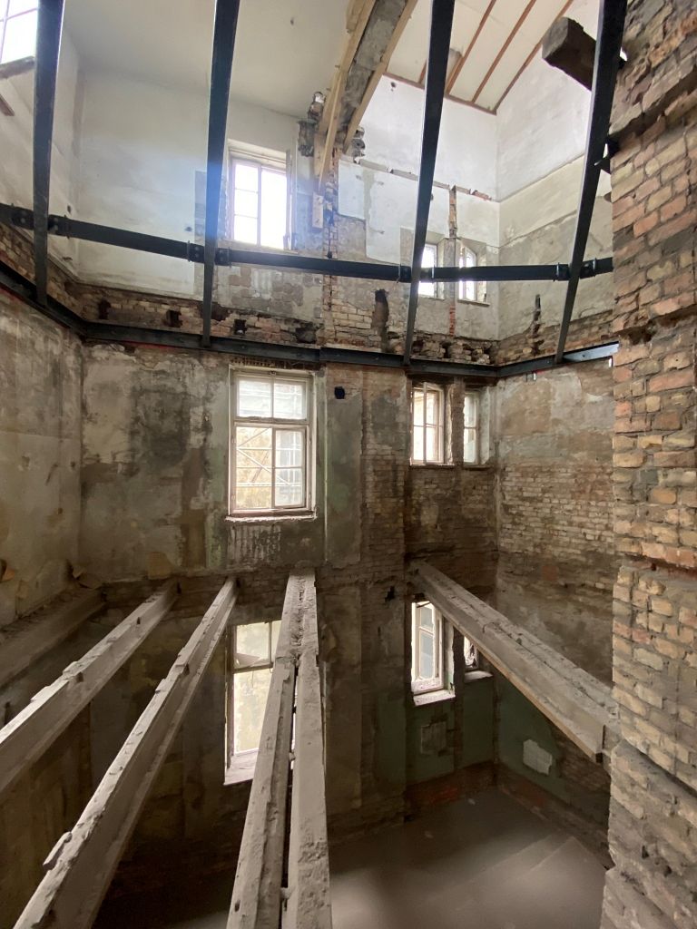 Sarežģīto ēkas rekonstrukciju no 2023. līdz 2025.gada rudenim veica uzņēmums Pillar Contractor, lielu uzmanību pievēršot vēsturiskā mantojuma saglabāšanai. Projekta arhitekti bija arhitektu birojs Palast Architekts un arhitektu birojs Vilnis Mičulis, interjeru veidoja arhitektu birojs Vilnis Mičulis un Kristīna Reinberga. Būvuzraudzību veica BLV Advisory Group.