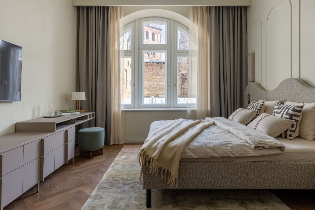 “Mēs atjaunojam vēsturiskās ēkas ar dziļu cieņu pret to sākotnējo raksturu, cenšoties saglabāt autentiskumu, vienlaikus ieviešot mūsdienu komfortu. Īpaši būtiski mums bija saglabāt kultūras mantojumu, nodrošinot, ka katra detaļa — no izmantotajiem materiāliem līdz krāsu izvēlei — ir vēsturiski precīza un pārdomāti izvēlēta. Vienlaikus telpās tiek harmoniski integrēti mūsdienīgi risinājumi”, norāda AmberStone Hotels valdes priekšsēdētājs Jānis Vilisons.