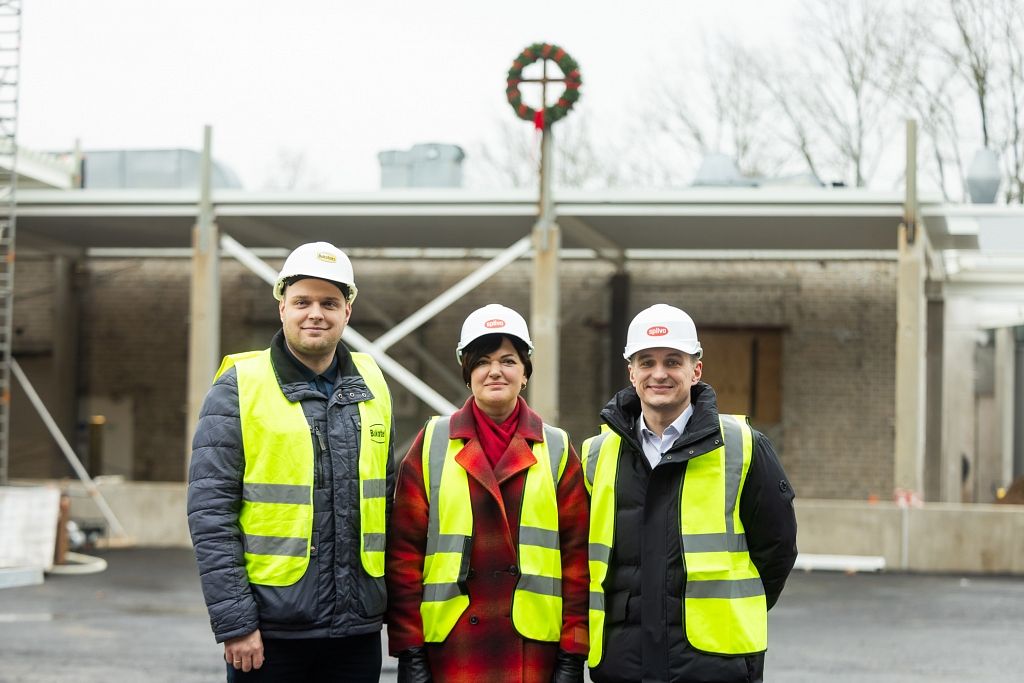 Tie iezīmē brīdi, kad ražotnes jaunais piebūves apjoms ir sasniedzis savu augstāko punktu un projekts virzās uz nākamajiem būvdarbu posmiem, kuri norit pēc iepriekš noteiktā plāna.
